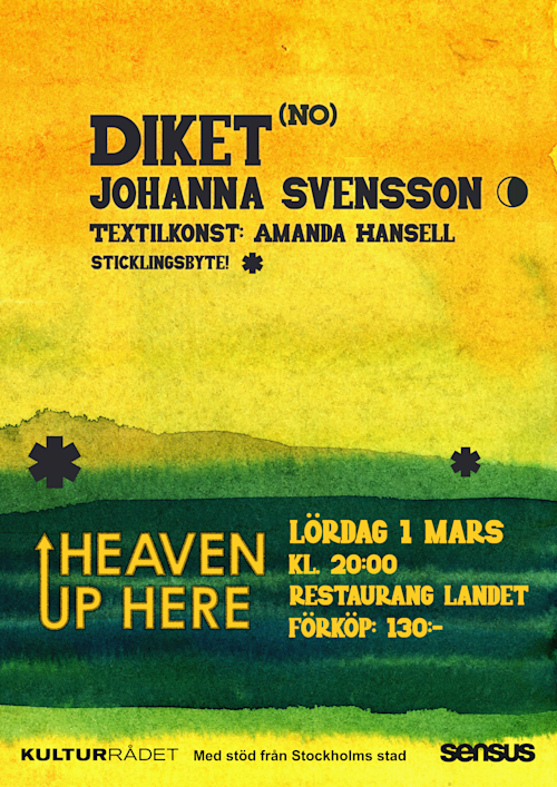 Nästan ett år efter braksuccén på Heaven Up Here kommer Johanna Svensson tillbaka. Den här gången finns det dock ett tydligt mål med besöket: att tillsammans med publiken möta Nymånen. Den som tar tunnelbanan till Telefonplan kommer få både höra nya och gamla Svensson-låtar och mån-covers speciellt framtagna för kvällen. Men framför allt ska vi fira det stundande släppet av Månen, en låt som tar med lyssnaren på en resa från Trosas kommunvapen till Matthew McConaugheys outsinliga källa av visdom. En låt med en text så bra att en del av den hamnade på pränt i Nioosha Shams poesidebut Teshne.